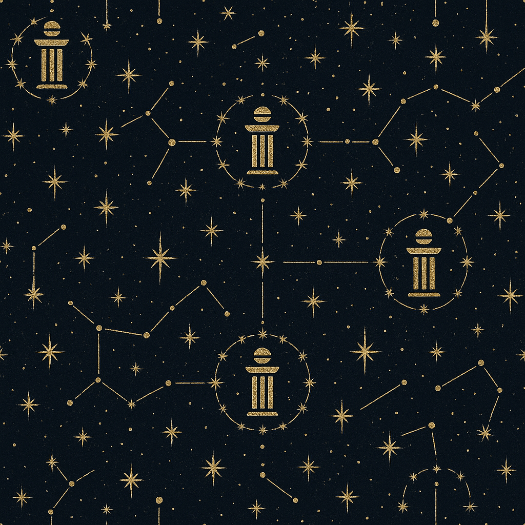 ⢠Subtle cyan constellation lines linking nodes