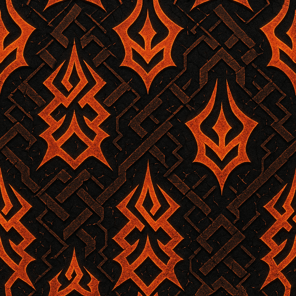 ⢠Sharp interlocking flame-rune geometry